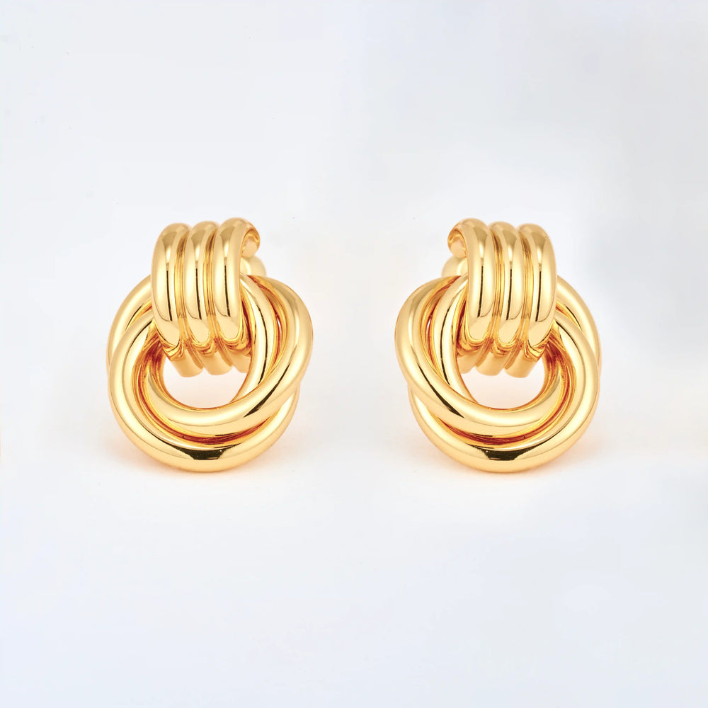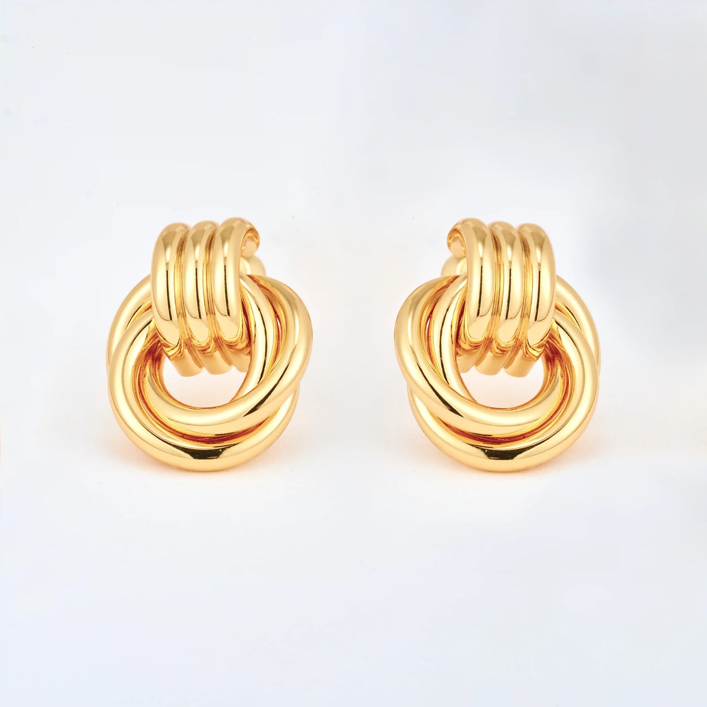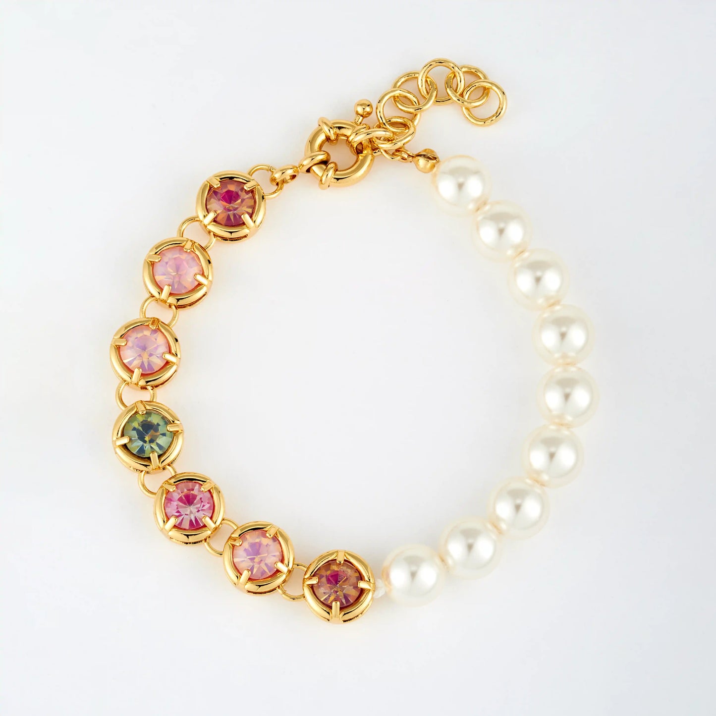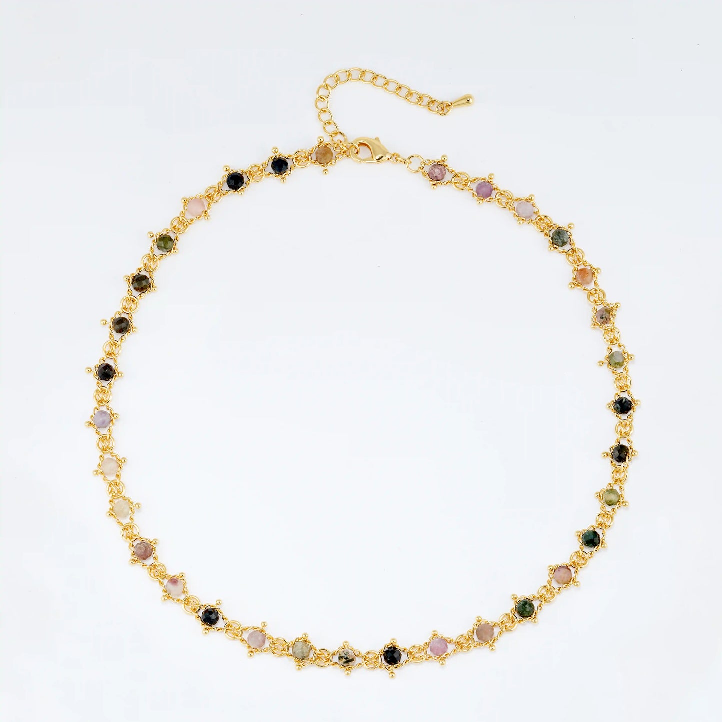 These gold chain gemstone earrings bring together three natural stones in deep navy, cherry red, and soft pink—each one shaped differently, each...