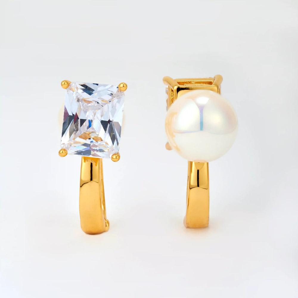 Modern and sophisticated, these elegant stud earrings feature a sparkling crystal on the front and a brilliant Mabe pearl on the back. Like a hidden gem, they exude a sense of surprise and sophistication from every angle. Designed for women who appreciate quiet contrasts and hidden sparkles.